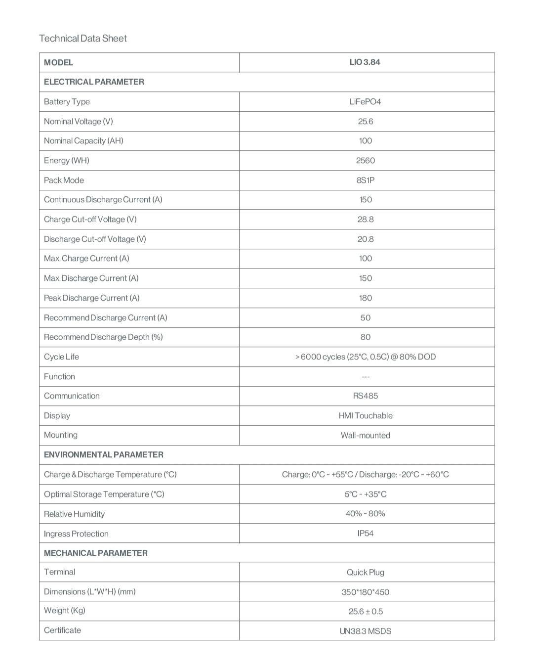 | Capacity | 100Ah |