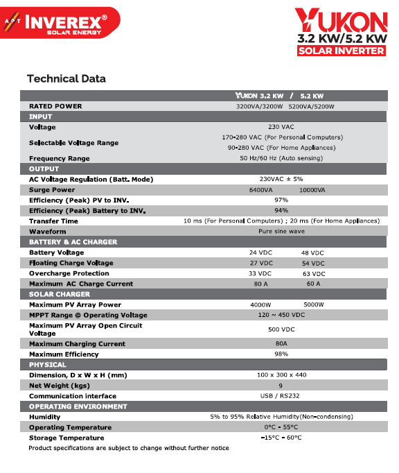 | Model | Inverex Yukon 3.2KW |
