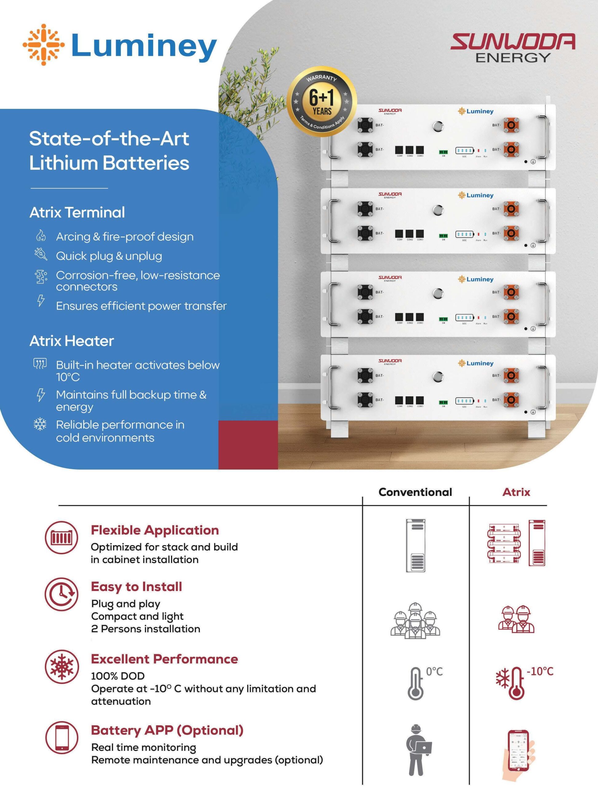 The Luminey Atrix Series by Sunwoda Energy is a premium LiFePO4 (Lithium Iron Phosphate) energy storage solution designed for residential, commercial, and hybrid solar inverter systems.